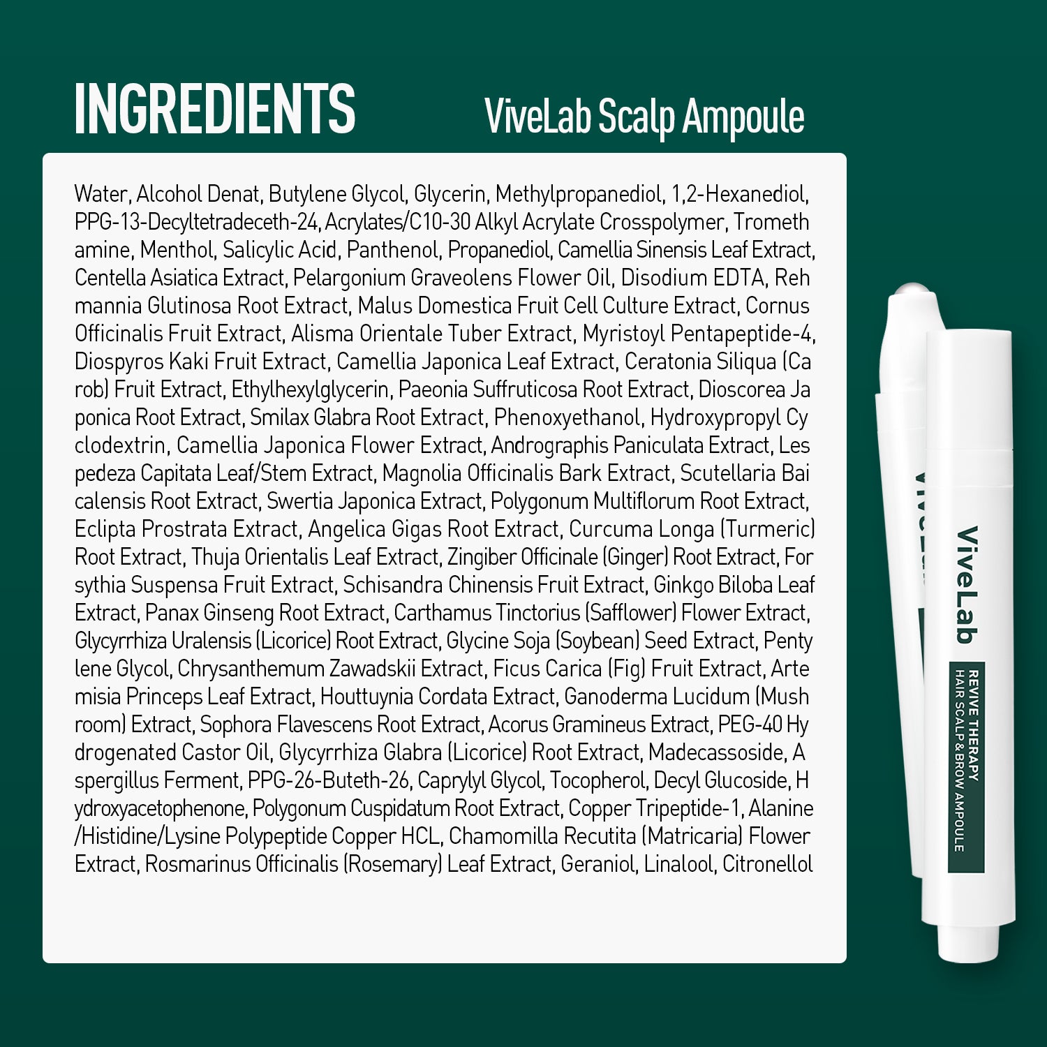 Water,Alcohol,Butylene Glycol,Methylpropanediol,Glycerin,1,2-Hexanediol,PPG-13-Decyltetradeceth-24,Tromethamine,Menthol,Acrylates/C10-30 Alkyl Acrylate Crosspolymer,Salicylic Acid,Panthenol,Propanediol,Camellia Sinensis Leaf Extract, Centella Asiatica Extract,Pelargonium Graveolens Flower Oil,Disodium EDTA,Rehmannia Glutinosa Root Extract,Lycium Chinense Fruit Extract,FragariaChiloensis (Strawberry) Fruit Extract,Berberis Vulgaris Root Extract,Morus Nigra Fruit Extract, Cornus Officinalis Fruit Extract,Alisma Orientale Tuber Extract,Diospyros Kaki Fruit Extract,Camellia Japonica Leaf Extract,Ceratonia Siliqua (Carob) Fruit Extract,Ethylhexylglycerin,Paeonia Suffruticosa Root Extract,Dioscorea Japonica Root Extract, Myristoyl Pentapeptide-4,Smilax Glabra Root Extract,Phenoxyethanol,Hydroxypropyl Cyclodextrin,Camellia Japonica Flower Extract,Andrographis Paniculata Extract,Lespedeza Capitata Leaf/Stem Extract,Magnolia Officinalis Bark Extract, Scutellaria Baicalensis Root Extract,Swertia Japonica Extract,Polygonum Multiflorum Root Extract,Eclipta Prostrata Extract,Angelica Gigas Root Extract,Curcuma Longa (Turmeric) Root Extract,Thuja Orien talis Leaf Extract,Zingiber Officinale (Ginger) Root Extract,Forsythia Suspensa Fruit Extract,Schisandra Chinensis Fruit Extract,Ginkgo Biloba Leaf Extract,Panax Ginseng Root Extract,Carthamus Tinctorius (Safflower) Flower Extract,Glycyrrhiza Uralensis (Licorice) Root Extract, Glycine Soja (Soybean) Seed Extract,Pentylene Glycol,Malus Domestica Fruit Cell Culture Extract,Chrysanthemum Zawadskii Extract,Ficus Carica (Fig) Fruit Extract,Artemisia Princeps Leaf Extract,Houttuynia Cordata Extract, Ganoderma Lucidum (Mushroom) Extract,Sophora Flavescens Root Extract,Acorus Gramineus Extract,PEG-40 Hydrogenated Castor Oil,Glycyrrhiza Glabra (Licorice) Root Extract,Madecassoside,Aspergillus Ferment,PPG-26-Buteth-26,Caprylyl Glycol, Decyl Glucoside,Hydroxyacetophenone,Tocopherol,Polygonum Cuspidatum Root Extract,Copper Tripeptide-1,Alanine/Histidine/Lysine Polypeptide Copper HCL,Chamomilla Recutita (Matricaria) Flower Extract, Rosmarinus Officinalis (Rosemary) Leaf Extract,Geraniol, Linalool,Citronellol